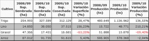 El siguiente cuadro compara los datos estadísticos finales de trigo, lino, girasol y arroz de las dos últimas campañas agrícolas en Entre Ríos.