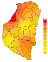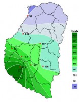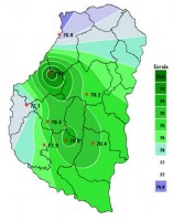 En el mapa que muestra la distribución de las precipitaciones asociadas a estos eventos en la provincia de ER, se observa plena cobertura de las precipitaciones aunque claramente el sur recibió la mayor oferta de agua. Un máximo muy destacado se observó en Victoria y el sur de Nogoyá, con acumulados que superaron los 100 milímetros.