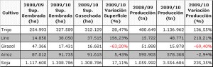 El siguiente cuadro compara los datos estadísticos finales de trigo, lino, girasol, soja y arroz de las dos últimas campañas agrícolas en Entre Ríos.