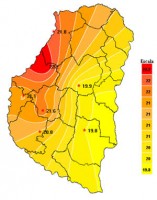 Después de un período de alta humedad y temperaturas moderadas el avance de un frente frío provocó algunas lluvias y comenzó a ubicar las temperaturas en valores que concuerdan con la proximidad del invierno. Tanto las mínimas como las máximas reflejaron un descenso; las primeras ubicándose entre 1ºC y 2ºC, casi la mitad de los valores de la semana anterior y las segundas con un tope de 22ºC pero con una tendencia a descender aun más en los próximos días.