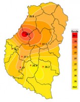 Durante la primera semana del mes de julio el avance de un sistema frontal cálido desde el norte del país favoreció el paulatino ascenso de la temperatura, cuyas marcas estuvieron lejos de las esperadas para esta época del año. Las mínimas se sostuvieron en los 6ºC sobre cero y las máximas alcanzaron casi los 28ºC, valor prácticamente  de primavera. Esta amplitud térmica mantuvo las medias diarias en valores cercanos a los 19ºC, que de no ser por el alto contenido de humedad del aire habrían sido muy agradables dentro de un periodo invernal.
