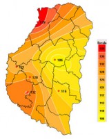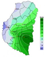 En el mapa que resume los acumulados pluviales de la última semana, se destacan importantes acumulados sobre los departamentos Colon, San Salvador y Concordia, con algunos registros locales destacados para la época del año. Seguramente la celda de tormenta más importante incluyó los departamentos vecinos de Uruguay, observándose como se diluye hacia el resto de la provincia.  Solo lloviznas y lluvias ligeras se observaron el sudoeste de la provincia, comportamiento que se repita sobre la provincia de SF y el noreste de BA. El sur  y el este de esta provincia se suman al centro este entrerriano para definir la zona mejor provista de agua en esta primera semana de julio.