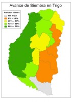 A nivel provincial el avance en las labores de siembra ha tenido un incremento de 15 puntos porcentuales con respecto a lo informado la semana anterior situándose en el 50% de la intención, la que a medida que pasa el tiempo y los pisos no permiten la continuidad de las labores, sigue disminuyendo. En la actualidad dicha expectativa es un 18% menor que el ciclo agrícola anterior. Este porcentaje estaría indicando que Entre Ríos culminaría su campaña triguera con aproximadamente 270.000 hectáreas, dependiendo del comportamiento del clima en los próximos días.