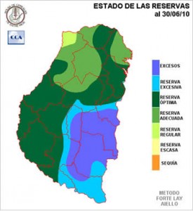 En el informe semanal actual pueden observarse bien como están las reservas de agua en el suelo en toda la Provincia de Entre Ríos.