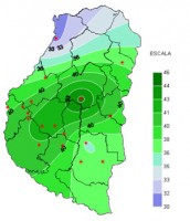 La circulación del sector norte ha impuesto una masa de aire subtropical con mayor contenido de humedad, favoreciendo el regreso de las lluvias. Se espera que los máximos pluviales se observen del centro para el noreste, sin embargo las lluvias tendrían cobertura generalizada, disminuyendo hacia el sudoeste de la provincia. Se prevé que luego de que mejoren las condiciones del tiempo, nuevamente se observe un descenso en los registros térmicos, sin embargo, las temperaturas crecen nuevamente durante el fin de semana.