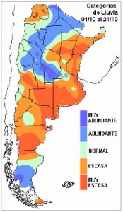 Recordamos que los acumulados de lluvia que lleva el mes de octubre no se compensan con algunas lluvias menores. En general en el mejor de los casos la provincia ha recibido el 30 o 40 por ciento de las precipitaciones normales del mes, por lo cual se exige demasiado a las previsiones de lluvia de mañana para normalizar la situación pluvial de octubre.