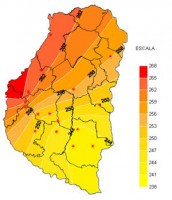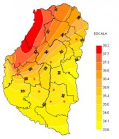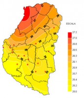 Al igual que viene ocurriendo en las últimas semanas el factor climático más destacado fue el aumento paulatino de las temperaturas. Durante esta semana los valores de temperaturas máximas registrados por la red de medición fueron en todos los casos superiores a los 34ºC con limites extremos por encima de los 38ºC. Las mínimas se mantuvieron por encima de los 16ºC, evitando el desarrollo de una amplitud térmica que permitiera valores medios inferiores a los que en realidad se registraron, por encima de los 26ºC en promedio diario.