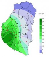 En general las lluvias no fueron importantes, aunque se definieron algunas celdas de tormenta que dejaron precipitaciones más copiosas. El registro más importante se observó en el norte de Tala (Guardamonte), con 60 milímetros. También en las vecindades de Aranguren y Rincón del Doll los acumulados crecieron hasta casi los 40 milímetros.