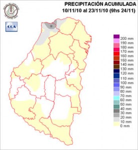 El mes de noviembre cerró con un importante déficit pluvial en toda la provincia, evidenciándose un fuerte impacto del fenómeno de "La Niña". Este magro despliegue de lluvias se hizo sentir en toda la Mesopotamia, el norte del país, Santa Fe, norte de Buenos Aires, este de Córdoba y norte de La Pampa. Es decir, una vasta zona dentro de la cual se encuentra el área agrícola principal para la gruesa, tuvo en noviembre un destacado déficit en la oferta de agua. A nivel provincial esto seguramente impactará en la posibilidad de concretar la intención de siembra original. La situación puede generar implantaciones que no son habituales en la provincia siempre y cuando el mes de diciembre comience a mostrar cambios en el patrón pluvial.