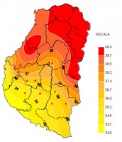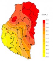 El ingreso de una masa de aire frío durante el fin de semana permitió un importante descenso de las temperaturas mínimas durante este período. Las mismas retrocedieron a valores de casi la mitad de las medidas durante el período anterior, pasando en promedio, de 16ºC a 8ºC. Si bien las mínimas se vieron muy afectadas por este frente frío, las máximas no lo fueron tanto ya que alcanzaron registros extremos superiores a los 40ºC. Esta amplitud térmica posibilitó que la temperatura media semanal rondara los 21ºC, morigerando la elevada sensación térmica percibida.