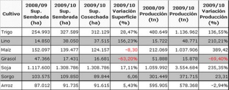 El siguiente cuadro compara los datos estadísticos finales de trigo, lino, maíz, girasol, soja, sorgo y arroz de las dos últimas campañas agrícolas en Entre Ríos.
