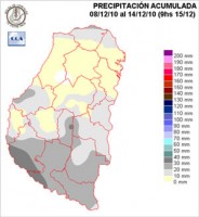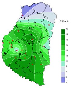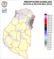 Pasado este sistema meteorológico reciente las características se ubicarán en LLUVIAS POR DEBAJO DE LAS NORMALES Y TEMPERATURAS SUPERANDO LAS MARCAS MEDIAS, pensando en un período que irá hasta mediados de enero. Como comentario no debemos dejar de mencionar que LA NIÑA está produciendo un impacto casi “de manual”, o sea, por efectos de las grandes escalas atmosféricas el escenario es de lluvias por debajo de los valores normales y las lluvias obedecen a mecanismos regionales que podrían ser más activos recién a partir del mes de febrero del corriente año.