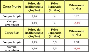 Teniendo en cuenta los gastos erogados para la implantación y los que deberían realizarse para la cosecha y comercialización del mismo, los productores deberían alcanzar los siguientes rendimientos: