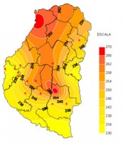 La incidencia de la alta tasa de Radiación solar media registrada ya es fundamental en el desarrollo de las elevadas temperaturas que padece toda la provincia y en el consecuente aumento de la cantidad de grados/día acumulados. Algunas lluvias muy aisladas y de corta duración han sido poco útiles para revertir un importante déficit hídrico. La humedad relativa ambiente permaneció en valores moderados y el aporte de agua de las precipitaciones posibilitó que se registren algunas Horas de mojado foliar, de poco efecto en la vegetación debido al elevado índice de evapotranspiracion producto de las altas temperaturas.