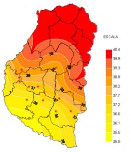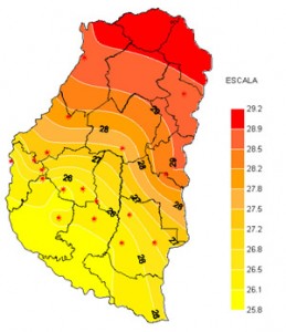 En los últimos siete días las temperaturas han mantenido un régimen casi constante respecto de las semanas anteriores y, al igual que en esos casos, el ingreso de frentes fríos de corta duración, permite la presencia de lluvias y un descenso temporal de las marcas térmicas. Este descenso, sin embargo, no alcanza para disminuir los registros medios semanales. Las máximas continúan cerca de los 40ºC y las mínimas, salvo durante las precipitaciones, no descienden por debajo de los 20ºC. Estas condiciones confirman día a día los pronósticos de un verano caluroso con precipitaciones por debajo de las medias históricas.