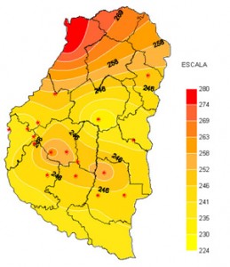 Se destacan algunos sectores reducidos que se mantienen en sequía en el centro del departamento Paraná u otras más conspicuos en La Paz y Villaguay. Estas estaciones de balance no contabilizan más que 40 milímetros en lo que va del mes, muy poco para quebrar el patrón deficitario. El mismo, por cierto es más exigente y extendido en el noreste provincial, aunque es posible que la zona haya recibido algunas precipitaciones durante el transcurso de la jornada de ayer. De todos modos salir de la sequía en la zona implica recibir precipitaciones superiores a los 60 milímetros, mas de cien para llegar a reservas regulares.