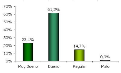 Con respecto a la condición del cultivo, el 84,4% se posiciona entre buena y muy buena; mientras que el 15,6% restante posee una condición de regular a mala, ver Gráfico 1.