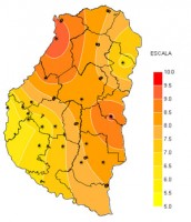 El ingreso de un frente de aire frío durante la ultima semana provocó algunas precipitaciones, no muy intensas, fundamentalmente sobre el oeste de la provincia, y el aumento de la nubosidad que, sumado al acortamiento estacional de las horas de sol diario, disminuyeron la Tasa de Radiación Solar media registrada. Aun así, la misma se mantuvo en valores normales para esta época del año. Las precipitaciones y el aumento del contenido de humedad del aire elevaron, aunque no excesivamente, la Humedad Relativa Ambiente, pero no así las horas de mojado foliar acumuladas que se mantuvieron en valores entre moderados a bajos.
