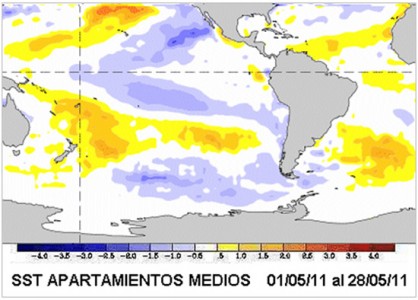 Los modelos internacionales de pronóstico, no muestran por el momento ningún desvío que pueda sugerir que la neutralidad en la que se ha ingresado se quiebre en lo que resta del año. Por lo tanto, es altamente probable que la campaña 11/12, transcurra bajo una situación neutral. Los fenómenos de El Niño o La Niña, no se harían presentes como predictores climáticos para la próxima campaña de granos gruesos. Esto limita las proyecciones del clima a largo plazo, dado que estos eventos ya tienen una gran validación como indicadores y se conoce cada vez con mayor precisión como impactan en la distribución de precipitaciones.