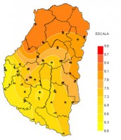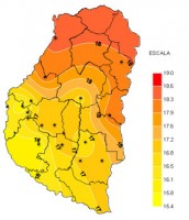 El comienzo del invierno cambió totalmente las condiciones de temperatura que predominaron durante el otoño, produciendo un fuerte descenso de las marcas térmicas que las ubicó en valores típicos de la estación. Las temperaturas mínimas registradas por la red de medición descendieron durante los últimos siete días mas de 12ºC respecto de las de la semana anterior, llegando los valores mas extremos a ser inferiores a los 4ºC bajo cero. Estos registros ocasionaron la presencia de heladas de variada intensidad, fundamentalmente al comienzo del periodo. Las marcas máximas también acusaron el descenso y solo llegaron a promediar los 16ºC. Esta gran amplitud térmica dio como resultado una muy baja temperatura media diaria, que apenas bordeó los 9ºC, pero que es acorde con los registros históricos en la misma fecha.