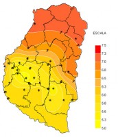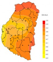 Durante los últimos siete días se ha producido un fuerte descenso de las temperaturas que anticipa un invierno típico de los años neutros. Las marcas mínimas fueron muy bajas, con valores que oscilaron entre los 3ºC y los 6ºC BAJO CERO, motivo por el cual se han producido heladas de importante intensidad. Aun así, lo relevante no fue solo el rigor de las bajas temperaturas, sino la cantidad horas diarias durante las cuales los valores estuvieron por debajo de cero. La red de medición registró, en promedio, entre 6 y 10 horas diarias por debajo de la marca de cero grado, motivo fundamental por el cual temperaturas máximas de 16ºC no pudieron elevar la temperatura media diaria mas allá de los 7ºC.