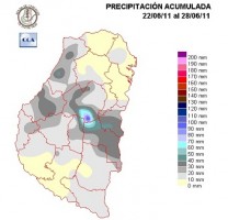 Durante este periodo las precipitaciones fueron prácticamente nulas en toda la región. El predominio de un centro de alta presión en la zona central del país, generó condiciones estables sobre la provincia por lo que se inhibió el desarrollo de precipitaciones. Esta condición posibilitó el registro de una muy buena Tasa de Radiación Solar media, que en algunos casos estuvo por encima de los valores normales para la época. La humedad relativa ambiente superó levemente los valores de la semana anterior favorecida por el aumento de la temperatura, que también incidió sobre la cantidad de horas de Mojado Foliar acumuladas debido al aumento de condensación nocturna.