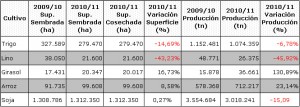 El siguiente cuadro compara los datos estadísticos finales de trigo, lino, girasol, arroz y soja de las dos últimas campañas agrícolas en Entre Ríos.