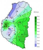 Como se observa en el mapa, las lluvias fueron algo más importantes en los departamentos del sur y desde el este de Villaguay hacia Concordia. En el resto del territorio provincial los acumulados fueron menores, del orden de los 5 milímetros o en muchos casos lloviznas que no alcanzaron a dejar registro,