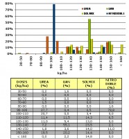 UREA el 48,4% se ubicó en el rango de 90 kg/ha a 110 kg/ha.