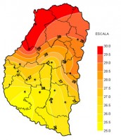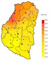 El ingreso del sistema frontal que provocó las leves precipitaciones del viernes próximo pasado interrumpió el ascenso de temperatura que se venía manifestando desde la primera semana de septiembre, manteniendo regímenes térmicos similares a los de la semana anterior. Las mínimas, con un muy leve ascenso, se mantuvieron entre los 5ºC y 8ºC y las máximas, aunque por poco, no alcanzaron la marca de los 30ºC. Aun así, estos registros pueden considerarse mas que adecuados para el inicio de la primavera.