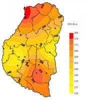 Dado que las muy heterogéneas precipitaciones ocurridas durante este período fueron de moderada intensidad y corta duración no afectaron la Tasa de Radiación solar media registrada, que mantuvo una muy buena acumulación de Grados/Día, sobrepasando ya los 1000 W/m2 de máximo cenital. La humedad relativa ambiente tuvo un leve ascenso siguiendo el ritmo del aumento del contenido de agua en el aire y las horas de Mojado Foliar acumuladas también incrementaron moderadamente su valor fundamentalmente en el norte de la provincia, lugar donde las precipitaciones tuvieron mayor relevancia.