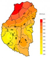 En cambio hacia el centro sur donde las lluvias en general han sido inferiores a los 10 mm el stand de plantas presenta serios inconvientes; los Colaboradores mencionan que en los bajos (donde existe más disponibilidad de agua en el perfil) la emergencia ha sido homogénea, hacia la media loma de las chacras comienza a manifestase cierta disparidad y menor número de plantas y finalmente hacia la loma la emergencia es senciblemente más escasa.