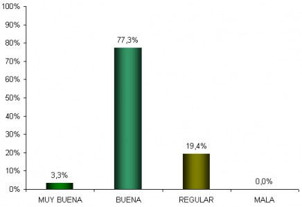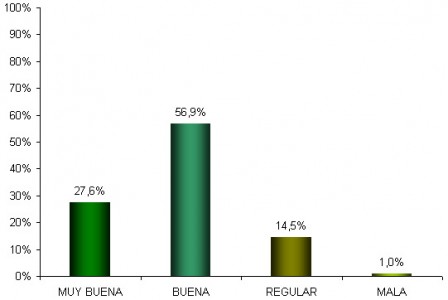 La evaluación del estado general del cultivo refleja que el 80,6% de la superficie se ubica entre Bueno y Muy Bueno y el 19,6% restante corresponde a la condición de Regular.