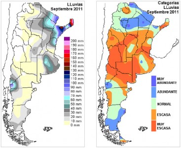 En cambio, durante el mes de septiembre del 2011 el promedio de las lluvias fue de 36 mm, es decir la mitad de lo que normalmente se espera.