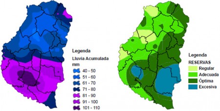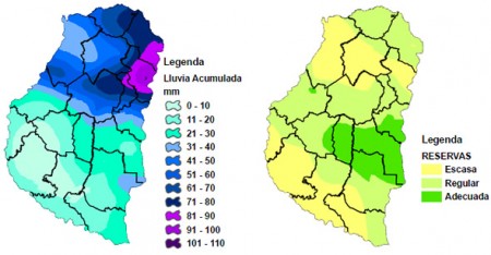Por medio de los registros pluviométricos del SIBER se elaboró el mapa de precipitaciones y el promedio de la situación de las reservas hídricas para septiembre del 2010 y 2011.