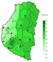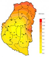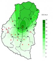 El pasado mes ha mostrado un comportamiento muy favorable de las lluvias en la provincia de Entre Ríos, y solo en sectores del sudeste de la provincia los acumulados quedaron restringidos a los valores normales. Es decir el piso de los registros mensuales se ubicó en los 100 a 110 milímetros, principalmente en el sudeste, llegando en el norte de la provincia a triplicarse esta marca. El 80 por ciento del territorio entrerriano obtuvo lluvias por encima de los valores normales, notándose una oportuna recuperación en el área triguera principal del sudoeste de la provincia.