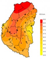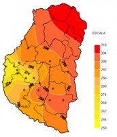 Durante los últimos siete días el avance de un frente frío desde el centro-sur de la región pampeana provocó algunas precipitaciones y un descenso de las marcas térmicas, fundamentalmente de las temperaturas mínimas que fueron bajas para los parámetros normales del mes de octubre, con los valores mas extremos en un promedio de 5ºC. Las temperaturas máximas también se vieron afectadas por el mismo frente, pero en menor medida ya que con registros promedio de 28ºC estuvieron dentro de los valores típicos estacionales.