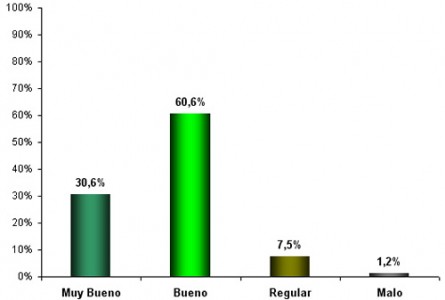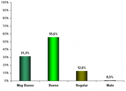 Los resultados se muestran en el Gráfico 1, como puede apreciarse el 86,90% del área presenta una condición calificada entre buena y muy buena, esto se fundamenta en el hecho de que las lluvias durante el mes de noviembre fueron muy favorables y tan solo el 13,1% posee una condición entre regular a mala.