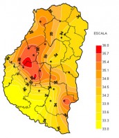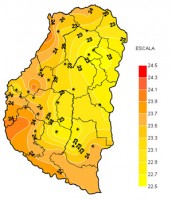 Los últimos siete días prácticamente no han presentado cambios respecto de la semana anterior, las temperaturas mínimas continuaron siendo mas bajas que las normales para el mes de diciembre, fundamentalmente durante los últimos días del período considerado, cuando los valores extremos medidos estuvieron por debajo de los 10ºC. Las temperaturas máximas tuvieron un comportamiento más adecuado a la fecha del año y se mantuvieron entre 33ºC y 36ºC, aunque todavía se encuentran por debajo de los 39ºC registrados en igual periodo de años anteriores.