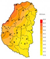 El solsticio de diciembre llega con temperaturas en franco ascenso que han alcanzado los valores mas elevados de los últimos meses. Las temperaturas mínimas de la semana superaron ampliamente las del periodo anterior, hubicandose en valores entre los 14 y los 16ºC. Por su parte las temperaturas máximas, en general, oscilaron entre los 38 y los 39ºC pero, en casos puntuales como en las localidades de Mojones Norte y San Gustavo, las estaciones automáticas registraron marcas por encima de la barrera de los 40ºC, siendo los valores medidos 40,5ºC y 41,4ºC respectivamente.