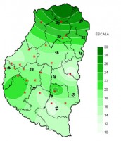 La presencia de algunas lluvias entre moderadas e intensas durante los primeros días del periodo analizado, principalmente en la región norte de la provincia, moderaron levemente la Tasa de Radiación solar Media registrada, disminuyendo los valores medidos por primera vez en varias semanas. Si bien esto fue un paliativo no alcanzó para disminuir la alta evapotranspiracion diaria que merma las reservas de agua en el suelo. Aunque solo fue durante los primeros días del periodo, el aumento del contenido de agua en la atmósfera posibilitó un leve ascenso de la Humedad Relativa y de las Horas de Mojado foliar acumuladas, en concordancia con la distribución de las precipitaciones.