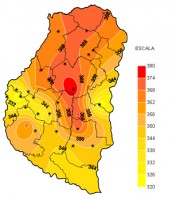 Con una ausencia total de precipitaciones y una muy alta tasa de Radiación Solar, que supera los 1300 W/m2 en el máximo cenital, los últimos siete días revelan el avance de un verano muy cálido y con una escasez de humedad que está teniendo un efecto negativo fundamentalmente en el maíz y la soja. La humedad relativa ambiente semanal, en líneas generales, fue la más baja de los últimos períodos y se destaca la ausencia casi total de Horas de Mojado foliar acumuladas en toda la provincia.