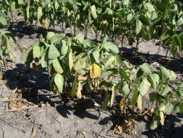 En lotes con algún grado de erosión o con «barreros» se detecta la muerte de plantas por manchones y al igual que para la soja de 1era, la lenta tasa de crecimiento no le permite al cultivo superar la altura de los rastrojos de trigo, evidenciándose además poco desarrollo radicular y plantas con las hojas del tercio inferior con alto porcentaje de clorosis y senescencia