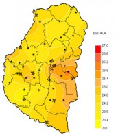 Durante este periodo el ingreso al territorio provincial de un frente frío ocasionó, además de algunas precipitaciones, un retroceso en las marcas térmicas. Las temperaturas mínimas promediaron los 12 y 15ºC y las máximas, en general, se mantuvieron entre 34ºC y 36ºC y solo en algún caso, como por ejemplo la localidad de Mojones Norte, rozó los 39ºC de valor extremo. En ambos casos, tanto máximas como mínimas, descendieron casi tres grados centígrados respecto de las registradas la semana previa.