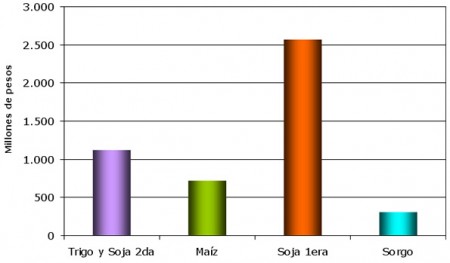 Cabe aclarar que los cálculos se efectuaron sobre una superficie cultivada de 1.930.906 ha, conformada por: Trigo 280.906 ha, Sorgo 150.000 ha, Maíz 210.000 ha y Soja 1era + 2da 1.290.000 ha.