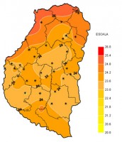 Los últimos siete días mostraron características térmicas muy similares a las de la semana previa. La presencia de un importante centro de alta presión ubicado sobre la zona central del territorio nacional provocó condiciones estables, permitiendo que las temperaturas se mantuviera dentro de las marcas habituales para el mes de febrero. Las mínimas rondaron los 15ºC y las máximas, con un moderado ascenso respecto del período previo alcanzaron los 39ºC.
