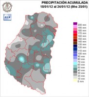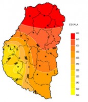 La presencia durante la ultima semana de un eje de máxima presión en los niveles medios y altos de la atmósfera incrementó las condiciones de estabilidad, inhibiendo la formación de nubosidad en toda la franja central del país permitiendo así un nuevo incremento de la Tasa de Radiación Solar media registrada. Esta situación sumada a las altas temperaturas, aumentó sensiblemente la pérdida de humedad por evapotranspiración.