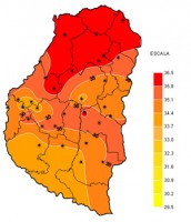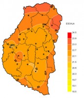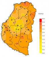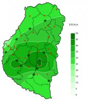 Una vez más la presencia de intensas lluvias fue la variable climática más destacable de los últimos siete días. Esta condición, que además estuvo acompañada por elevada nubosidad a lo largo de la semana, mantuvo baja la Tasa de Radiación Solar media registrada y por el contrario muy alta la Humedad Relativa que, en general, se aproximó a una media semanal del 80%. Las Horas de mojado Foliar acumuladas una vez mas calcaron la geografía de intensidad y distribución de las precipitaciones con valores moderadamente altos.