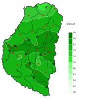 Tal como viene ocurriendo desde el mes anterior las precipitaciones estuvieron presentes en forma generalizada durante este período de análisis con una distribución bastante uniforme, que mantuvo una alta nubosidad y por consecuencia una baja Tasa de Radiación Solar media. La Humedad Relativa ambiente continuó en ascenso y prácticamente en forma constante se mantuvo muy alta. En el caso de las Horas de mojado foliar, contrariamente a lo que se podría esperar, en esta oportunidad la distribución de las mismas fue contraria a la de las precipitaciones y, como consecuencia de la circulación de los vientos y de las masas de aire húmedo, el acumulado fue mayor en aquellas zonas donde las precipitaciones fueron menos intensas.