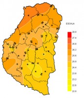 Durante los últimos siete días la presencia en el territorio provincial de una masa de aire cálido y húmedo además de generar condiciones de inestabilidad mantuvo alta la sensación térmica y a las temperaturas en valores levemente superiores a los normales para este mes. Las máximas por pocas décimas no llegaron a los 38ºC y las mínimas, en ningún caso, fueron inferiores a los 15ºC.